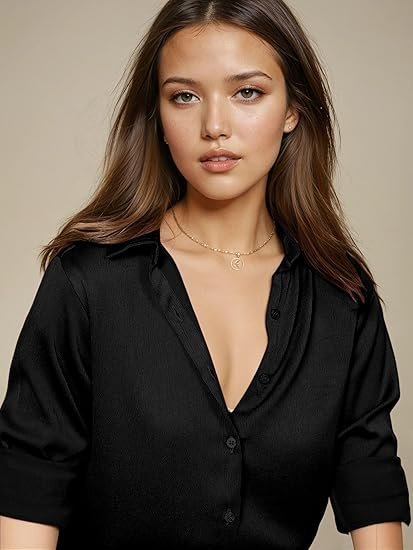 Women Cloth'sAahwan Women Satin Regular Fit Solid Button Up Drop Shoulder Officewear Casual Formal Long Sleeve Shirt