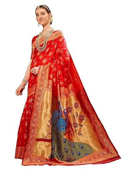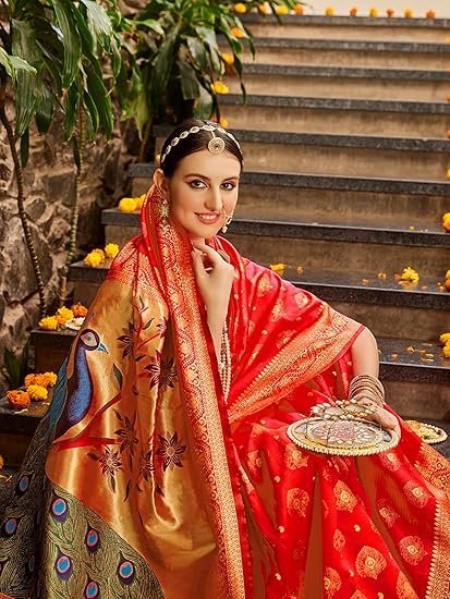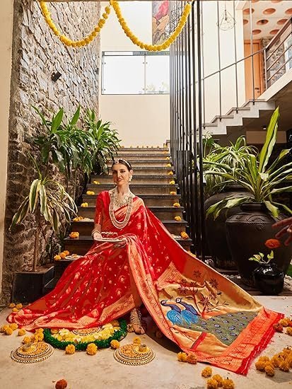 - Saree Details || Saree Fabric :- Silk Blend| Saree Pattern :-Woven Design |Saree Length :- 5.3 Meter | Saree Type :- Paithani | Saree Color : Red