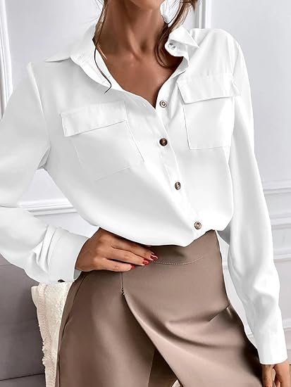 • 👚 Classic & Timeless: This elegant button-down shirt for women features a turn-down collar, clean stitching, and a minimalistic pocket design that never goes out of style.