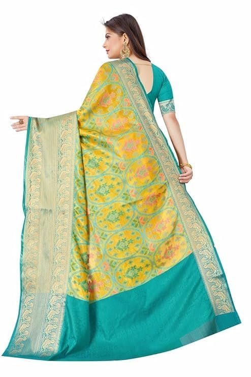 Kanjivaram Banarasi Silk Saree With Attached Blouse Material, Color Yellow