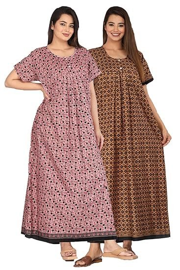 Kuruti B Sheets Nighty for Women Cotton Combo (Pack of 2) Nighty Gown Round Neck Short Sleeves Jaipuri Maxi Gown Printed Free Size