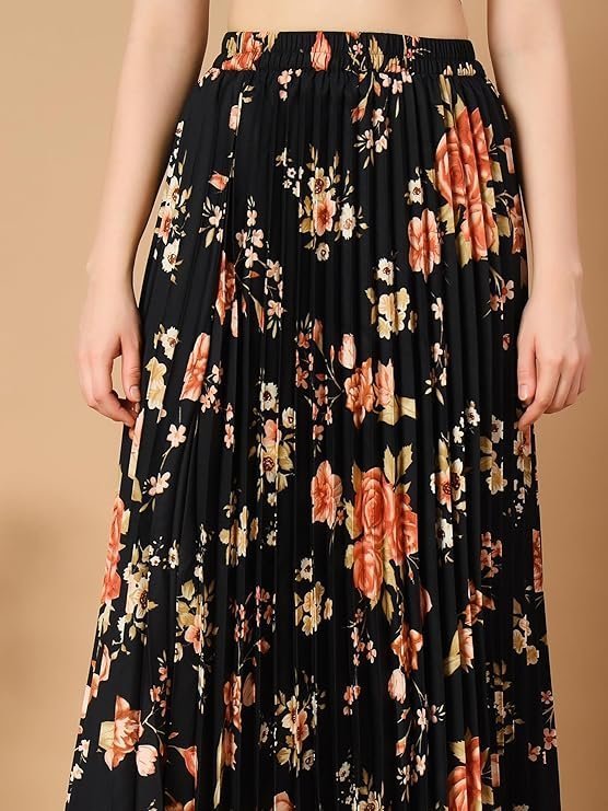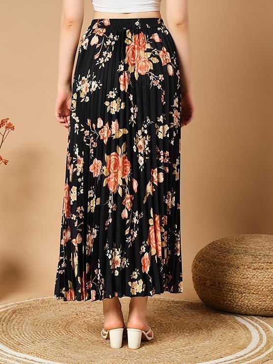 KZULLY | Floral Printed Maxi Skirt | Comfortable Elastic Waist | Stylish Morden and Comfortable Looking | Fashionable and Modern Look Perfect for Any Event
