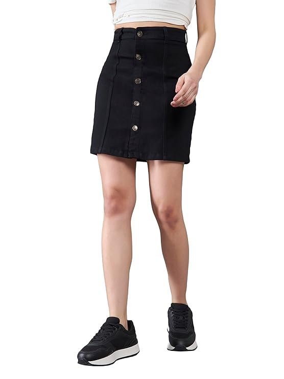 Miss Chase Women’s Regular High Rise Above Knee Stretchable Denim Skirt