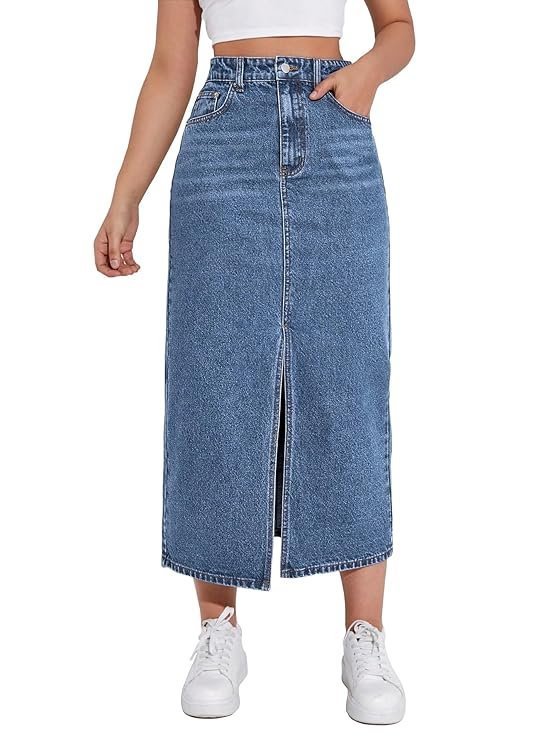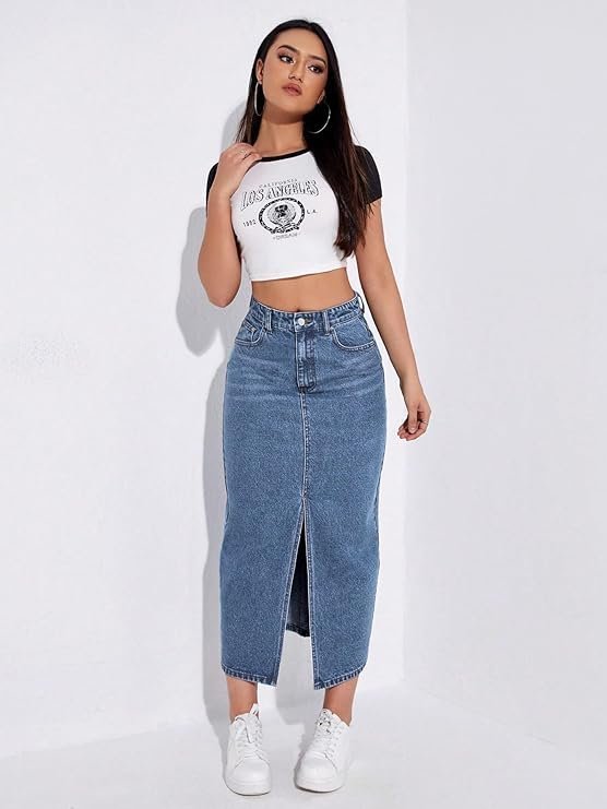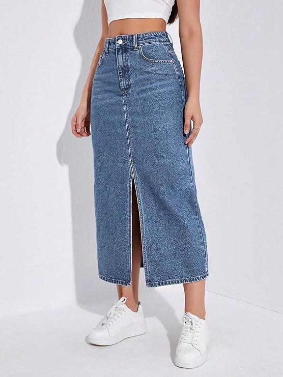 Shasmi Women’s Spring/Summer Casual Front Split Thigh Straight Denim Skirt ll Denim Skirt for Women Long ll Skirt & top for Women ll Skirts for Women Long Length (Skirt 159)