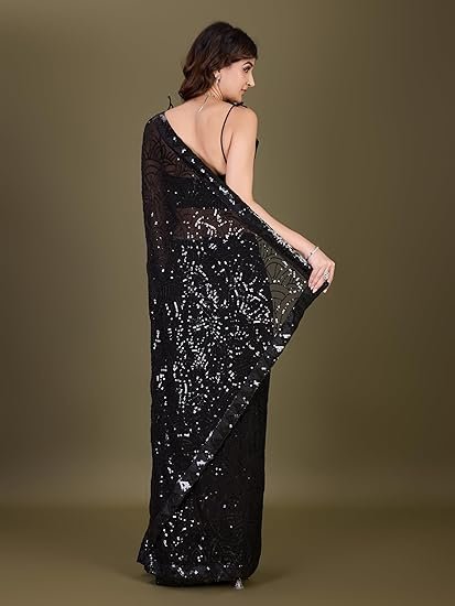 TRENDMALLS Women’s Georgette Sequence Embroidery Work Saree with Blouse Piece