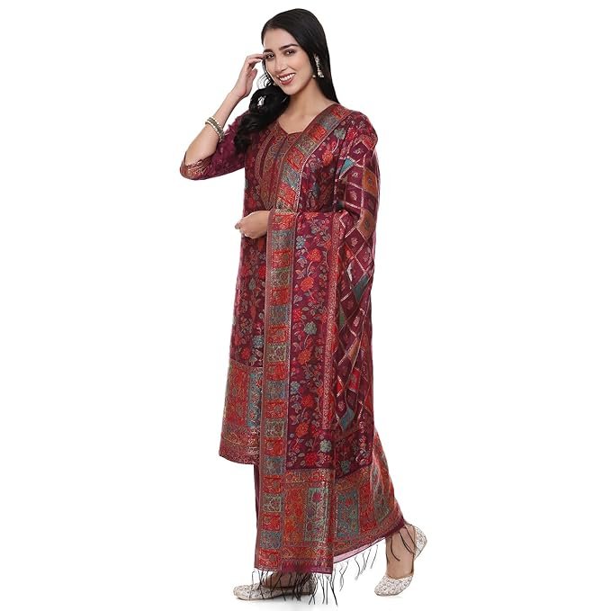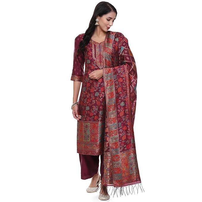 Biba Women Yarndyed Straight Kurta Cotton Blend Suit Set