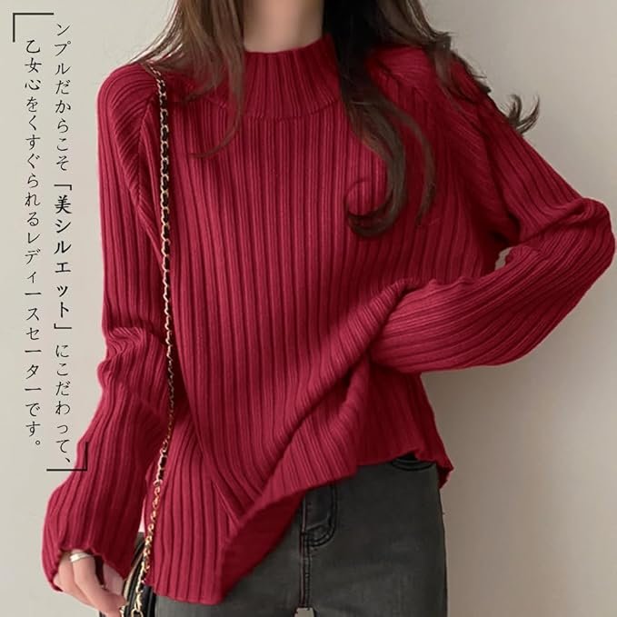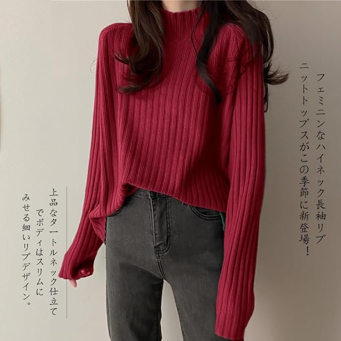 - ★ Feminine high neck long sleeve rib knit top is now available in this season! Elegant turtleneck tailoring and slim body with a thin rib design. Because of its simple design, this women’s sweater is made with attention to a beautiful silhouette. Comfort fit knit creates beautiful feminine lines Just put on this sweater and you can create a beautiful and delicate figure in 360 degrees