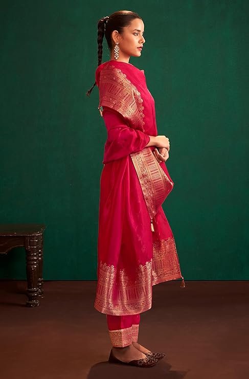 - Kurta Color : Red | Pant Color : Red | Dupatta Color : Red